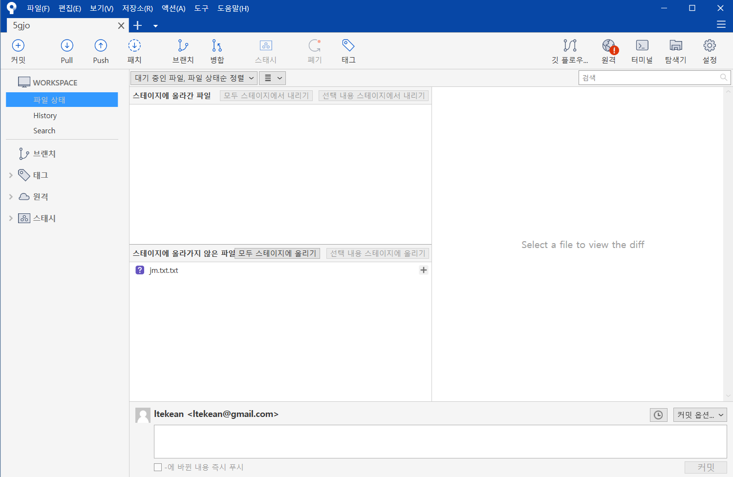 지금은 쉽게 이해하기 위해 txt 파일로 했지만, 나중엔 코드 파일도 마찬가지로 commit할 수 있다.